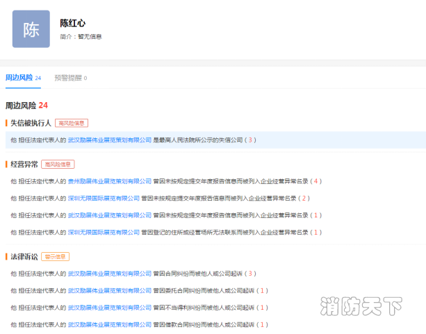 上海某展覽公司現任法人陳某某,曾在武漢某展覽公司擔任法人時,曾被合作伙伴湖北省汽車行業協會起訴至人民法院,陳某某擔任法人的武漢某展覽公司被最高人民法院公示為失信公司。