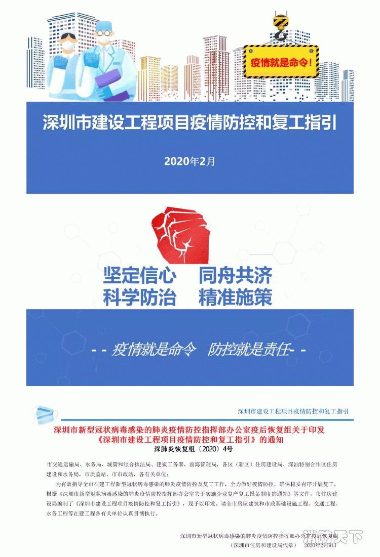 核心提示:深圳市建設工程項目疫情防控和復工指引