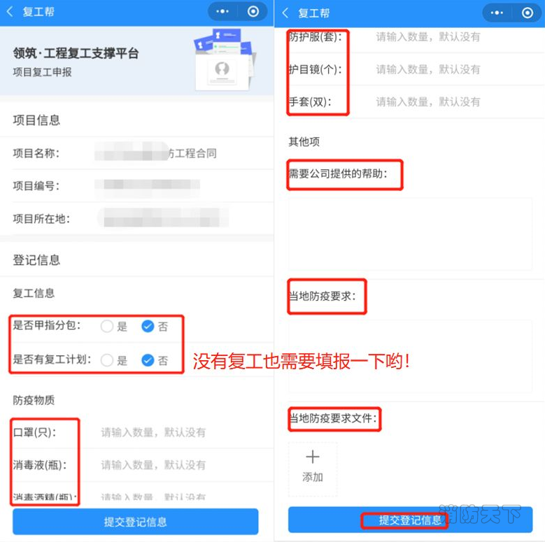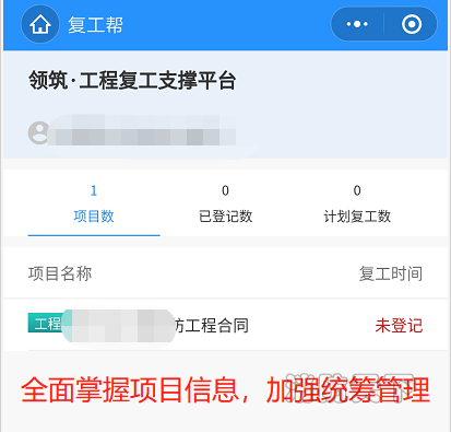 (填報復工信息,幫公司掌握項目復工動態,了解項目防疫物資情況,做全局統籌安排。)