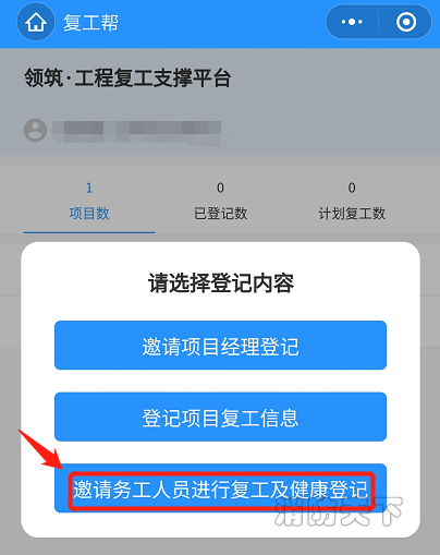 (填寫姓名和手機號碼,完成后通知該項目經理登錄復工幫。)