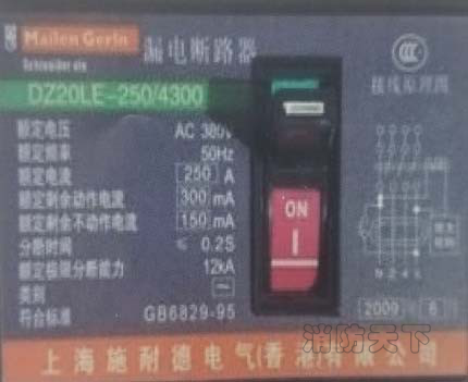 開關(guān)箱漏電保護(hù)器參數(shù)選擇不符合要求