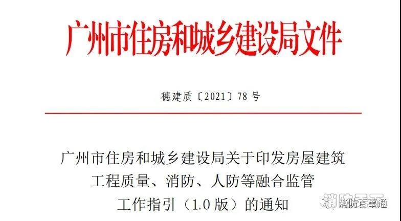 根據《建筑法》、《人民防空法》、《消防法》、《消防工程質量管理條例》等要求,廣州市住房和城鄉建設局印發房屋建筑工程質量、消防、人防等融合監管工作指引的通知。