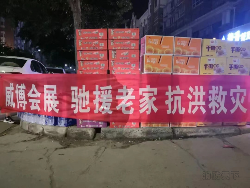 2021年7月中下旬河南省省會城市鄭州及省內多地市遭遇了歷史上罕見的特大暴雨洪澇災害。暴雨導致新鄉市、鶴壁市多地道路交通中斷,群眾被困、受災,各方救援力量迅速向受災地區匯聚;7月24日晚,威博會展連夜組織員工采購抗洪救援物資,第一時間送往市區救助站。7月25日上午又向災民安置點捐贈“毛巾、肥皂、洗臉盆、生活用紙”等急需生活物資。