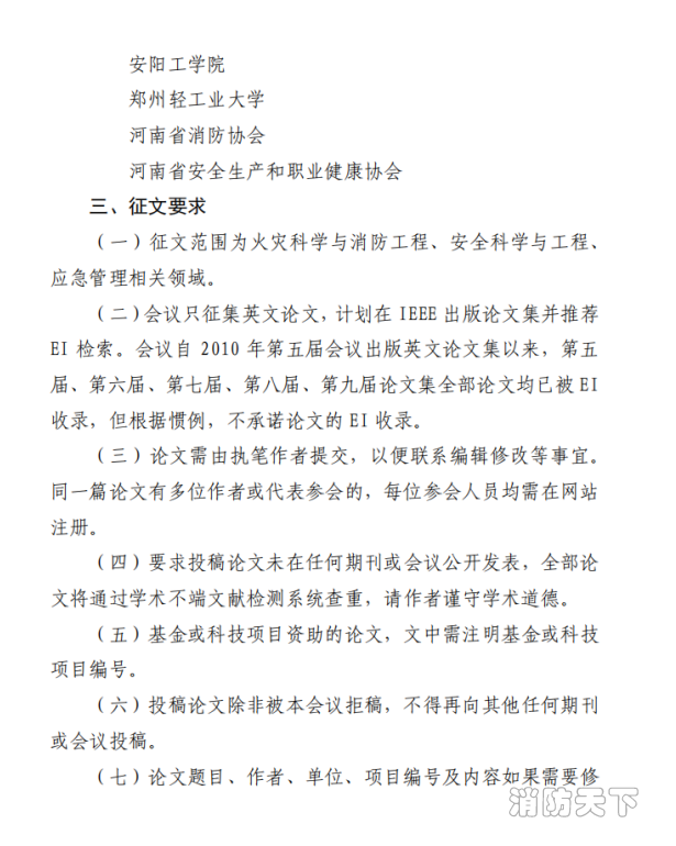 (五)歡迎推薦已取得火災(zāi)科學(xué)與消防工程相關(guān)領(lǐng)域博士學(xué)位或副高級及以上職稱的研究人員擔(dān)任會議審稿專家,歡迎自薦擔(dān)任會議審稿專家。