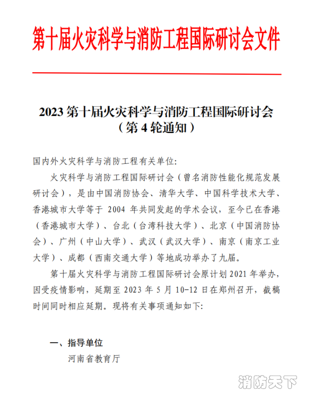 會議通知|第十屆火災(zāi)科學(xué)與消防工程國際研討會5月在鄭舉辦