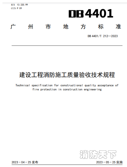 近期,由廣州市住房和城鄉建設局主編的廣州市地方標準《建設工程消防施工質量驗收技術規程》(DB 4401/T 212-2023)獲批發布,自2023年5月25日起實施。