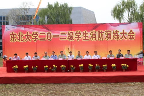 消防天下訊 9月各大高校2012級新生陸續開學并進行軍訓,消防安全更是不可忽視。近日,東北大學2012級學生消防演練大會在東校區體育場舉行,學校領導出席。