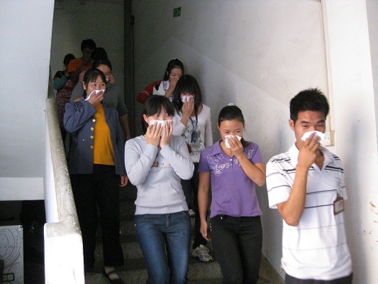 隨著消防火災警報的響起,數百名員工用濕毛巾捂鼻彎腰從消防通道和消防電梯迅速撤離火災現場,有序地進行疏散;與此同時,公司滅火組和疏散組工作人員立刻采取行動,趕赴現場實施救援。