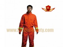 整套服裝使用永久性阻燃面料、彈性布、襯墊、阻燃線縫制。衣褲兩件式,另可使用拉鏈連接為連體式救援服。