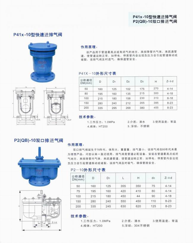 雙口排氣閥,單口排氣閥,自動補氣排氣閥