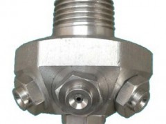 由本體、噴霧芯、噴霧嘴、防塵罩、過濾網等構成,一定壓力的水通過過濾網進噴頭后,在噴霧嘴內相互旋轉產生動能,經混合腔有噴嘴體形成的一定角度噴霧而出。