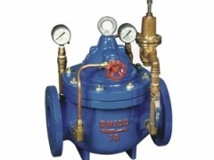 200X減壓穩壓閥由主閥、導閥、針閥、球閥、微型過濾器和壓力表組成水力控制接管系統。使用時,當調定出口壓力后,能自動保持穩定出口壓力。200X減壓穩壓閥利用導閥自力控制,不需要其它裝置和能源,保養簡便,壓力控制準確度高,受進口壓力和流量影響小,減壓穩壓可靠。200X減壓穩壓閥廣泛用于高層建筑、生活區等供水管網系統及城市供水工程。當閥門從進口端給水時,水流過針閥進入主閥控制室,出口壓力通過導管作用到導閥上。當出口壓力高于導閥彈簧設定值時,導閥關閉。控制室停止排水,此時主閥控制室內壓力升高并關閉主閥,出口壓力不再升高。當閥門出口壓力降到導閥彈簧設定壓力時,導閥開啟,控制室向下游排水。由于導閥系統排水量大于針閥的進水量,主閥控制室壓力下降。進口壓力使主閥開啟。在穩定狀態下,控制室進水、排水相同,主閥開度不變,出口壓力穩定。
