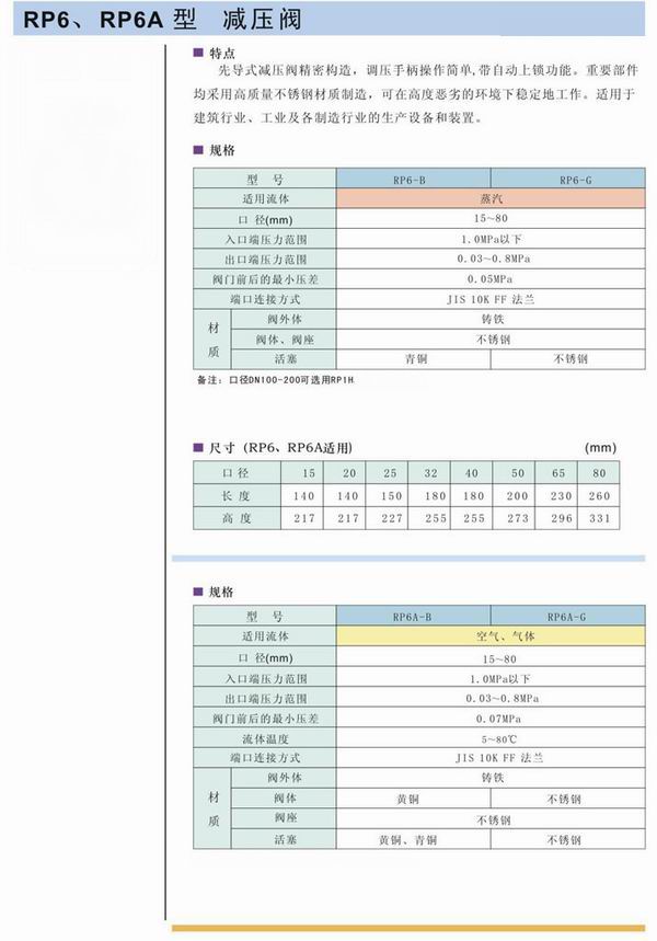 日本閥天VENN蒸汽減壓閥 RP-6、RP-6A、RP-6B、RP-6G