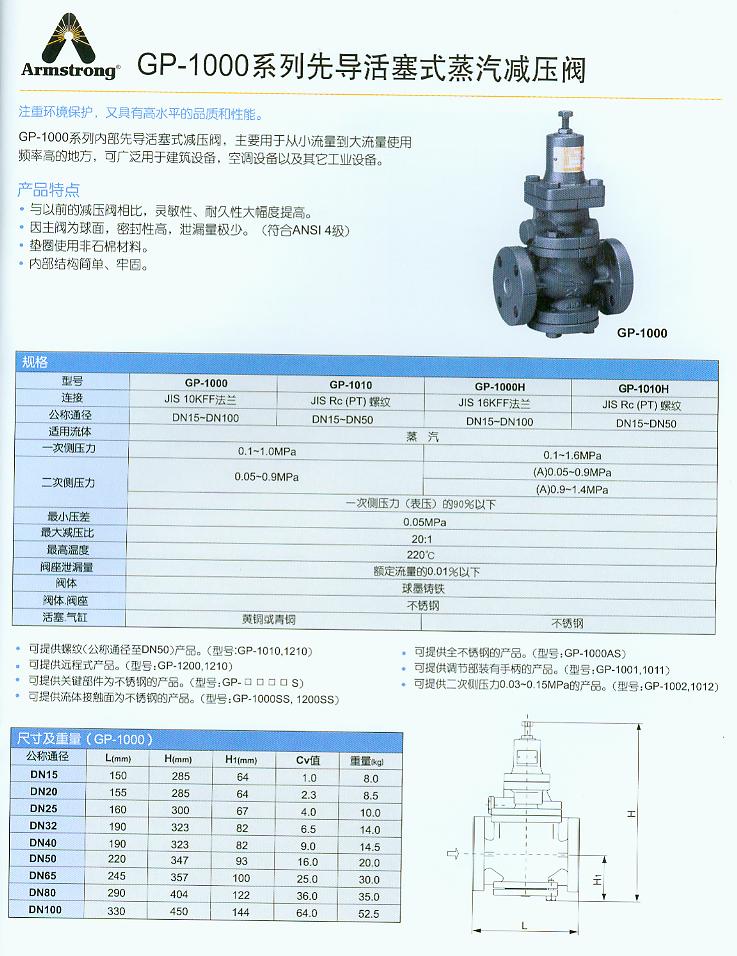 【阿姆斯壯Armstrong減壓閥】【美國阿姆斯壯Armstrong減壓閥GP1000】【美國阿姆斯壯GP1000減壓閥】