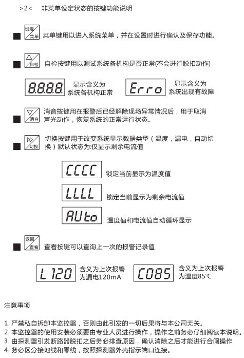 □ 探測器剩余電流報警值可以在50~999mA中任意設定