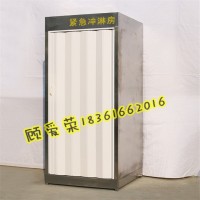 不銹鋼緊急沖淋房整體采用SS304不銹鋼焊接而成,內置一臺標準復合式洗眼器,配置收縮拉門,能有效的阻止廢水流入工作場地,避免造成污染。