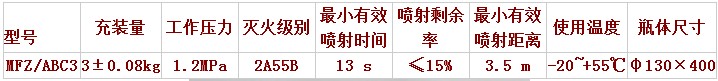 手提式干粉滅火器產品按照國家標準GB4351.1-2005《手提式滅火器 第1部分:性能和結構要求》設計制造,其主要技術參數見下表。