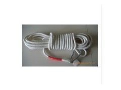 用途:當發生火災等災難時,將救生繩的一端用救生鉤固定,另一端系在使用者的腰上,雙手抓住繩子,順墻體緩慢的下降,直至地面。