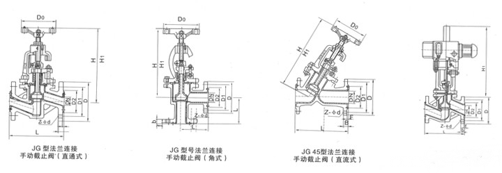 三、J44F46襯氟角式截止閥主要外形和連接尺寸表
