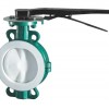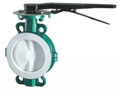 D71F46手柄對(duì)夾式襯氟蝶閥采用對(duì)分兩片式閥體組合,閥座與閥體內(nèi)襯一體化,閥門工作時(shí),只有全塑閥座與襯塑蝶板與介質(zhì)接觸,閥門可承受襯里材料介紹的介質(zhì)腐蝕,采用四極密封結(jié)構(gòu)并在密封面處配以耐溫抗老化的SI橡膠的彈性襯墊,完全達(dá)到介質(zhì)的零泄漏。