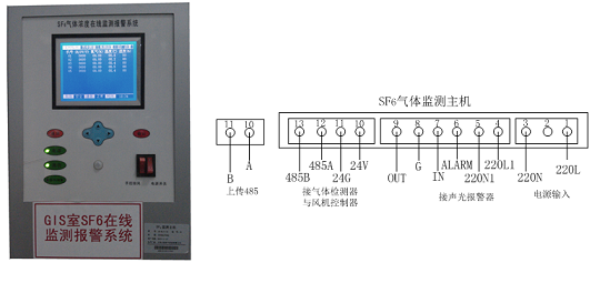 SF6氣體監測主機包括CPU主控單元、報警單元、通信單元、顯示單元和通風控制單元。通過與現場的各檢測器相連接,能準確無誤的接收檢測器傳送過來的檢測數據,通過運算分析,判斷是否超標,超標則進行聲光報警、啟動風機等輸出動作,主機采用大屏藍色液晶,用于顯示現場測量的實時數據,還可與鍵盤聯合作業,進行歷史數據查詢、系統時間設置、檢測模式設置等操作,操作界面簡單、友好,還具有手動啟動風機功能。采用掛壁式安裝方式。