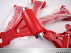 救生錘其實主要是利用其圓錐形的尖端,由于尖頭的接觸面積很小,因此當用錘砸玻璃時,該接觸點對玻璃的壓強(不是壓力哦,而是單位面積上的壓力)相當大,這個跟圖釘的原理有點相似,膜很容易就被刺破了,而且使車玻璃在該點受到很大的外作用力而產生輕微開裂,而對于鋼化玻璃而言,一點點的開裂就意味著整塊玻璃內部的應力分布受到了破壞,從而在瞬間產生無數蜘蛛網狀裂紋,此時只要輕輕的用錘子再砸幾下就能將玻璃碎片清除掉。