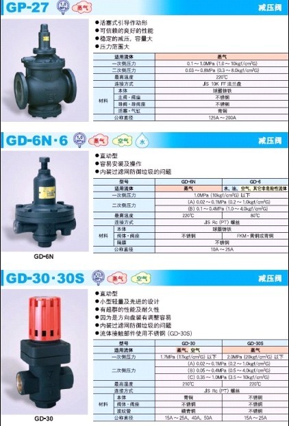 GD-30-30S蒸汽減壓閥 GD-6N-6直動型減壓閥 yoshitake減壓閥 耀希達凱GP-27活塞式減壓閥