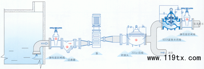 900X緊急關閉閥,是一種用于消防用水與生活用水并聯的供水系統中,用來調配供水方向的閥門。當火災發生時,消防急需大量用水,900X緊急關閉閥立即切斷生活用水,確保足夠的消防用水:當消防停止用水壓力減小時,閥門自動打開,呈常開狀態,恢復生活供水。該閥使系統無須另設專門的消防單獨供水管網,大大地節約了建設成本和用水量。閥門控制靈敏度高,安全可靠,調試簡便,使用壽命長。
