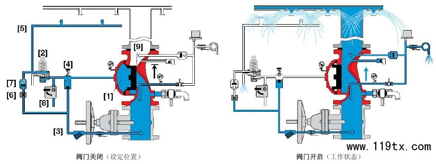 BERMAD(伯爾梅特)的典型雨淋閥帶手動復位開關使雨淋閥感應電、液壓、氣壓或電/氣信號打開后即保持開啟狀態。雨淋閥只有通過手動復位開關來復位.