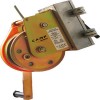 4)根據需要將絞輪裝在三角架的一條腿上,請注意需根據救援三角架腿上標示的位置安裝絞輪用固定銷固定。松掉三角架頂部的滑輪,插入安全纜繩后再裝上滑輪。 使用時搖動手動絞盤的搖把即控制鋼絲繩的上下從而達到救援的目的。本套設備所配的手動配有下降自鎖裝置,即上升到半空時突然不搖動搖把時,荷載物或人不會向下掉,只有將搖把向相反向搖動或按下降鍵時鋼絲繩才會向下運動。