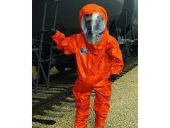全封閉型前入式A級氣密型防化服,呼吸器內置型設計,全部邊縫采用內外雙層熱合膠帶焊縫結構。正面門襟采用48英寸長氣密型拉鏈,配合雙層魔術搭扣門襟。面屏采用特殊工藝在40mil厚的PVC軟質面屏外涂敷10mil厚的特氟隆防化涂層。