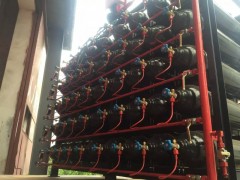 正常情況下,穩壓水泵工作時將水送至消防管網,維持消防管網壓力,多余的水進入氣壓水罐,當氣壓水罐液位達到磁翻板液位計的上限液位時,穩壓水泵停止工作,如此時系統壓力并沒有達到系統設定壓力時,穩壓空壓機啟動運行;當壓力升至穩壓壓力上限P4時,穩壓空壓機停止運行。由于系統泄漏等原因造成管網壓力下降,當壓力降到穩壓壓力下限P3時,若液位傳感器檢測為水,則重復穩壓空壓機運行;若液位傳感器檢測為氣,則重復穩壓水泵運行,如此周而復始。當發生火情時消防裝置投運,穩壓裝置無法維持管網壓力,當壓力降穩到消防壓力下限P2或有消防信號輸入,驅動電磁閥開啟,氣體頂壓裝置工作將氣壓水罐里的水頂入消防管網,并向管網提供10min的消防用水。