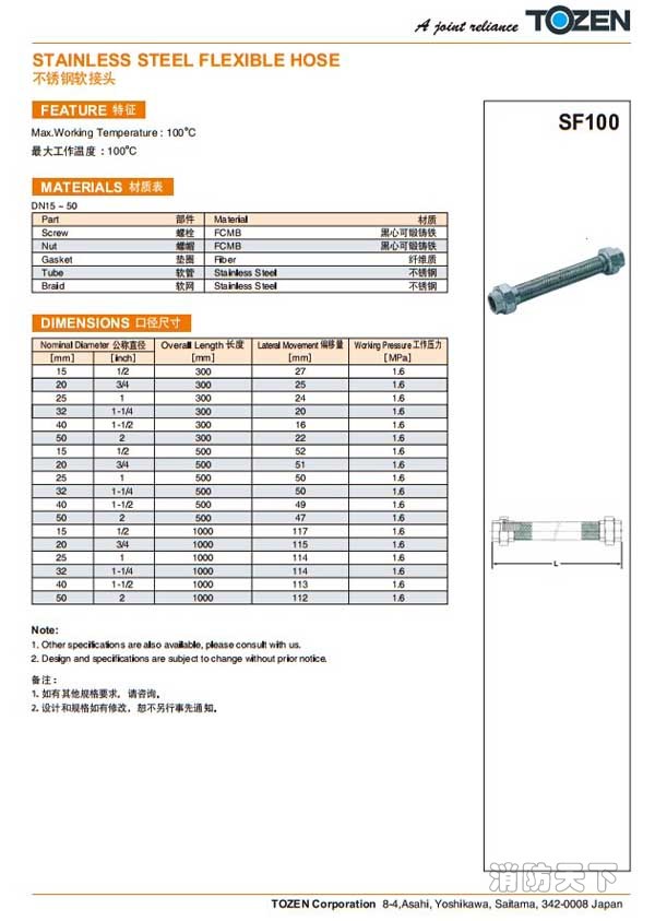 日本TOZEN SF100內(nèi)螺紋金屬軟接設(shè)計(jì)規(guī)范: