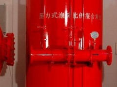 當壓力水流經過該泡沫罐的比例混合器時,比例混合器將其按比例分流,其中一小部分水進入帶膠囊的泡沫液儲罐夾層,擠壓膠囊,能使水與泡沫液(泡沫滅火劑)按 6%或3%的比例進行自動混合。輸出的泡沫混合液供泡沫產生的噴射設備(泡沫消火栓、泡沫發生器等)產生空氣泡沫進行滅火。該泡沫罐廣泛用于油庫儲罐區、化工廠、機庫、油田、燃油發電廠、鍋爐房、地下車庫、危險品倉庫等場所的水噴淋-泡沫聯用系統。