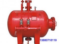 壓力式泡沫比例混合裝置主要由帶膠囊的泡沫液壓力儲(chǔ)罐與利用文丘里原理制成的PHY型壓力式比例混合器組成,當(dāng)系統(tǒng)管網(wǎng)中的水流經(jīng)比例混合器減壓孔板時(shí),在孔板的前后會(huì)形成壓差。壓高處的一部分水(3%或6%)通過泡沫罐的進(jìn)水管進(jìn)入罐內(nèi),擠壓膠囊,將膠囊中的泡沫液通過泡沫罐的出液管擠壓至比例混合器低壓處與水混合形成泡沫混合液,形成的泡沫混合液輸出到泡沫產(chǎn)生設(shè)備(中、低、高倍數(shù)泡沫產(chǎn)生器,泡沫炮等)與空氣混合產(chǎn)生泡沫滅火。該裝置廣泛用于油庫、化工廠、機(jī)庫、油田、燃油鍋爐、地下車庫等場(chǎng)所。