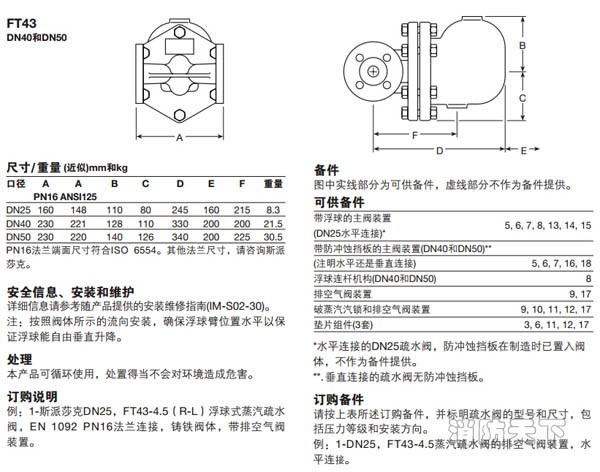 斯派莎克FT43浮球疏水閥是利用蒸汽和冷凝水的密度差來操作的。這種類型的疏水