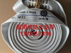 船用消防水龍帶符合GB6246-2001《有襯里消防水帶性能要求和實驗方法》標(biāo)準(zhǔn)。水帶在端部附近中心線兩側(cè)有印產(chǎn)品名稱、設(shè)計工作壓力、規(guī)格(公稱內(nèi)徑及長度)、經(jīng)線、緯線及襯里材質(zhì)、生產(chǎn)廠名、注冊商標(biāo)、生產(chǎn)日期。織物層編織均勻、表面整潔,無跳雙徑、斷雙徑、跳緯及劃傷。厚度均勻,表面光潔平整,無折皺和其他缺陷。聚氨脂材料制成。