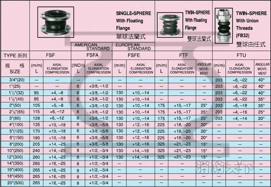 臺灣固安震YS-FLEX型橡膠軟接頭,分為三種不同材質法蘭片:可鍛鑄鐵(標準品),熱浸鍍鋅以及不銹鋼材質。