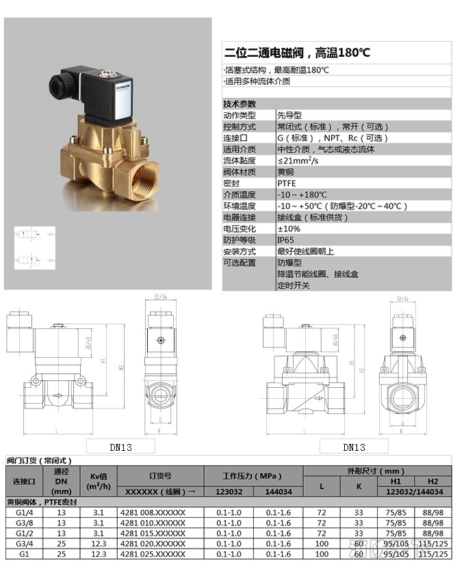 德國萊克LIK品牌:進口黃銅電磁閥閥體采用鍛壓成型,內件不銹鋼制作,用于管路中對水、油品、氣體等介質通斷的自動控制。