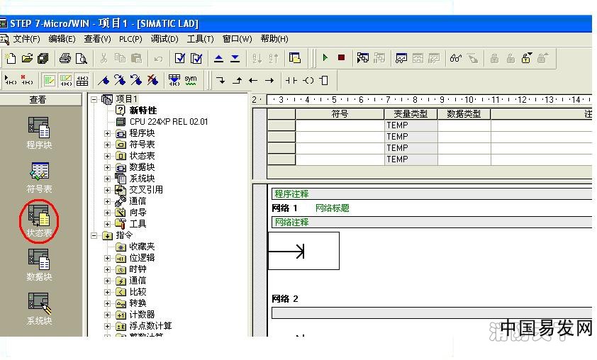如果想在編程軟件上監控輸入點和輸出點的狀態,可以點擊狀態表