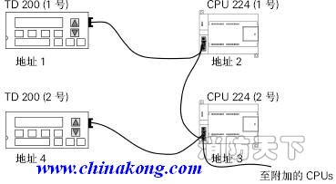 當多個S7-200 PLC與一個或多個TD200/TD200C連接時,采用網絡連接。