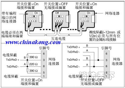 采用網絡連接器和用于Profibus網絡電纜連接。
