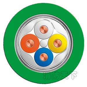用于在土中固定布線的總線電纜,四根硬線絞合組成的 4 芯絞合電纜,附加外部 PE 護套(內部 FC 電纜設計)