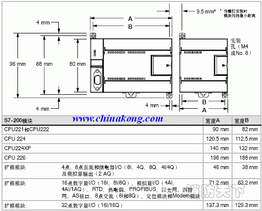 S7-200的CPU和擴(kuò)展模塊都有安裝孔,可以很方便地安裝在背板上。