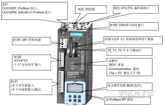?? CU310-2 DP 通過X100 的Drive-CLiQ 接口與功率模塊相連接。