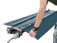 1、 在下鋼板上面鋪一層鐵氟龍耐熱布,然后將已經打齒的皮帶接頭(已經用風槍粘好)平鋪于熱壓機上,接頭處放在模板的中線上。以便接線兩邊受熱均勻。需要駁接的皮帶平鋪好后,在兩邊分別加一小塊同樣厚度的小皮帶廢料以免融化后的PVC原料外溢,導致接好之后的皮帶邊緣變薄。如圖: